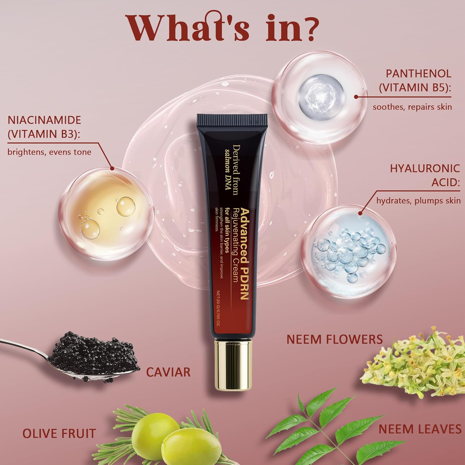 Advanced PDRN Rejuvenating Repair Cream, Panthenol Soothing Repair Moisturizing Cream, Hyaluronic Acid&Nicotinamide Brightening Essence, PDRN Salmon DNA Nourishing Formula for All Skin Types, 0.7 oz