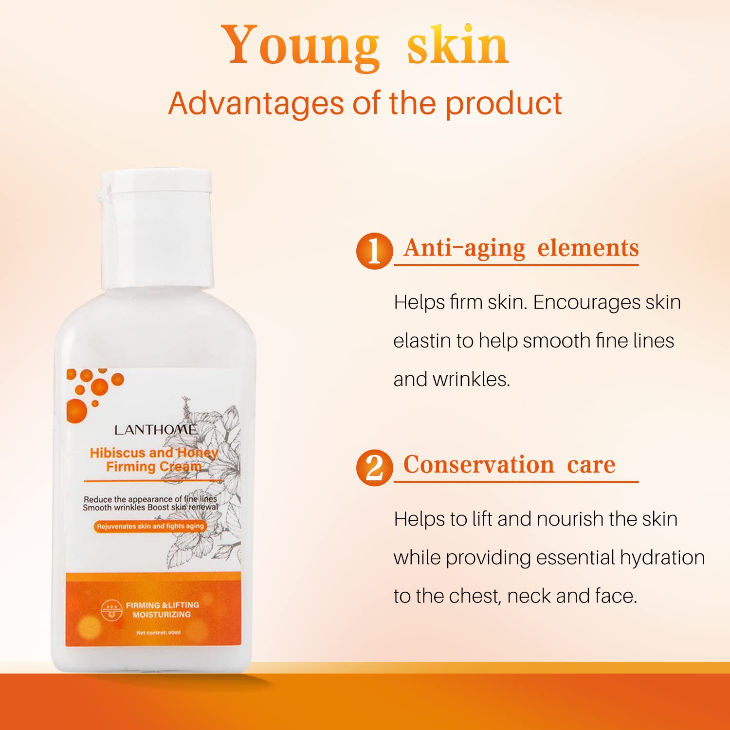 Hibiscus and Honey Firming Cream(60ML), Neck Firming Skin Tightening Cream With Collagen & Hyaluronic Acid, Reduces the Look of Neck Lines,Tightens,& Smooths