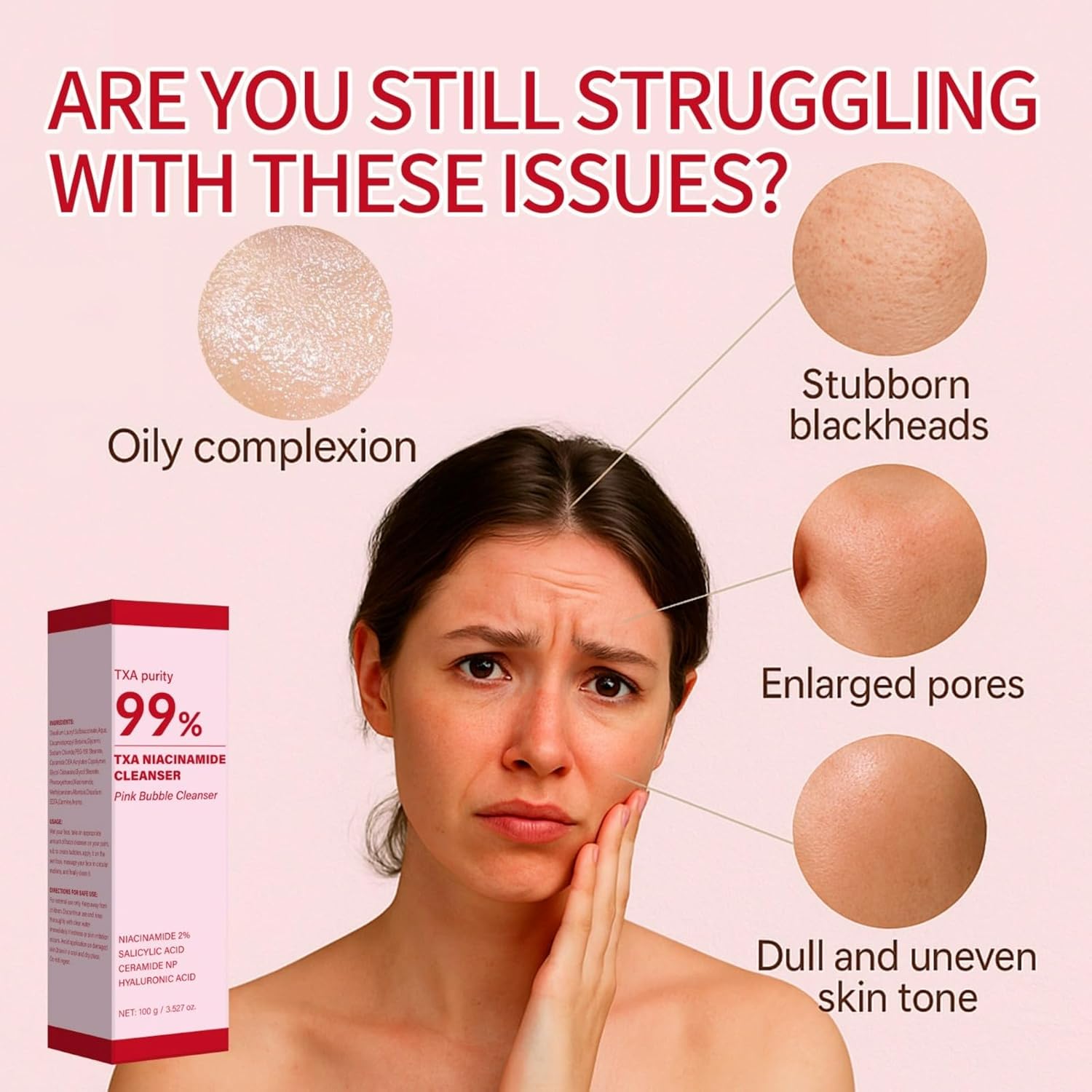 - 【Brightens Skin and Gently Eliminates Blackheads】Infused with Niacinamide, this facial wash helps clarify and brighten your complexion while gently dissolving pore-clogging impurities and reducing the appearance of blackheads. Regular use reveals smoother, more even-toned skin with minimized pores and a healthy, radiant glow.